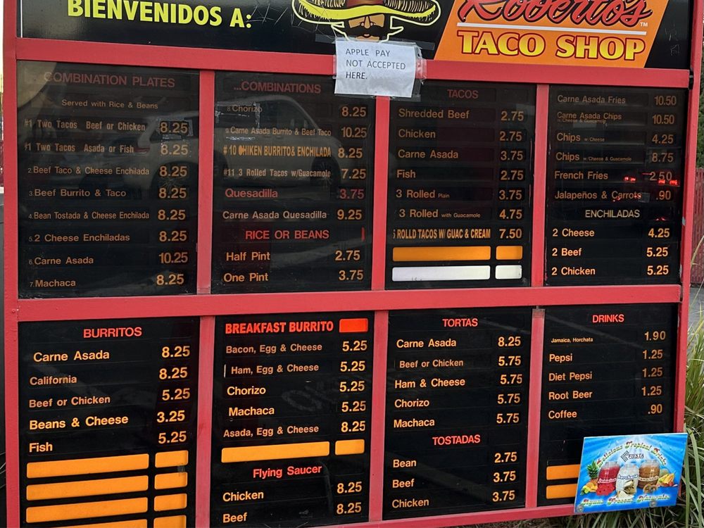 Roberto's Taco Shop CA Menu