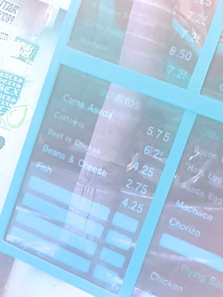 - Burritos: Enjoy a range of burritos with tempting fillings like Chicken or Machaca, starting at $2.50.